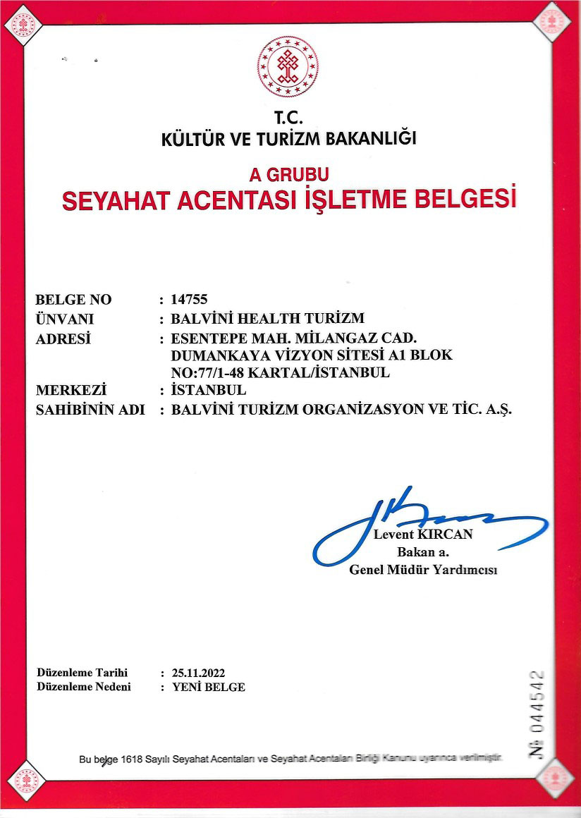 Balvini Tourismus und Organisation Tic. A.Ş. ist keine Gesundheitseinrichtung. Als vom Gesundheitsministerium autorisierte Vermittlungsorganisation für Gesundheitstourismus bieten wir gesundheitstouristische Dienstleistungen an und verbinden Sie mit vertraglich vereinbarten Gesundheitseinrichtungen.